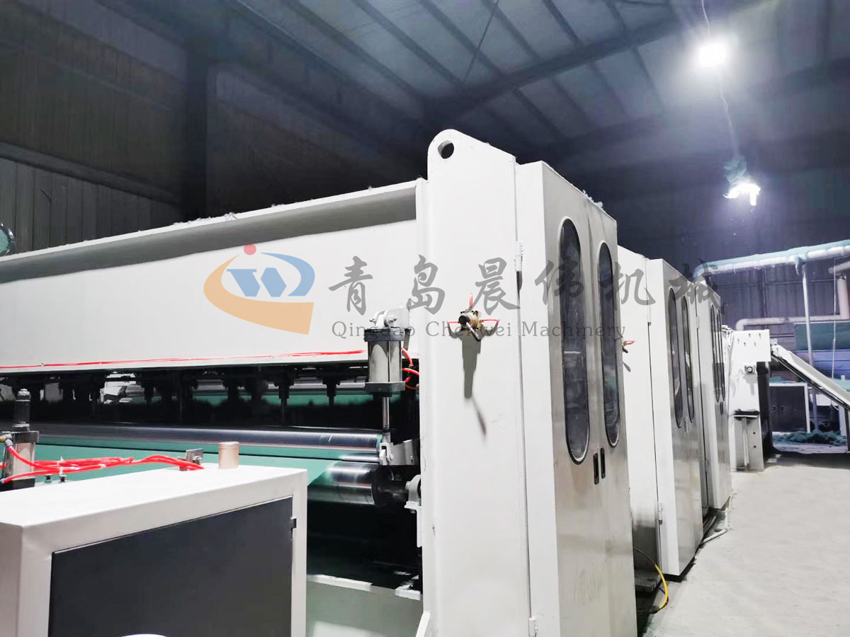 5. CWPW-鋪網(wǎng)機:用于將梳理纖網(wǎng)通過移動小車交叉折疊為所需幅寬和定量的多層纖網(wǎng),以供后道工序使用。鋪網(wǎng)輥采用特殊結(jié)構(gòu),加裝壓網(wǎng)輥和導(dǎo)流板,不飄網(wǎng)不起皺,五只大功率電機精確控制各部件的運動,電動輸出簾高度調(diào)節(jié)裝置