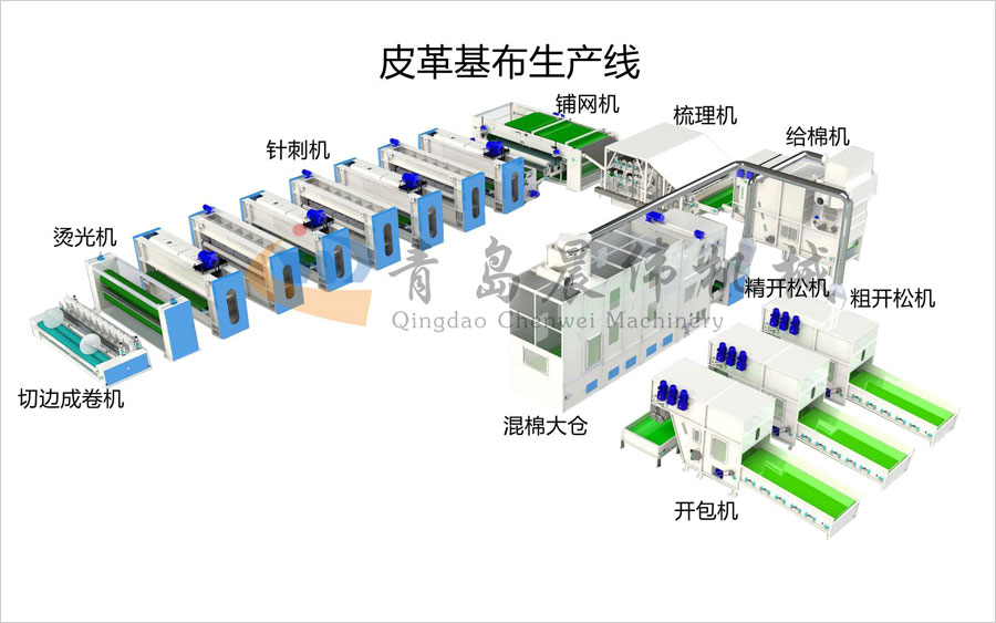具有皮革基布生產(chǎn)線內(nèi)部結(jié)構(gòu)無(wú)規(guī)則,一定的表觀密度,纖維分布均勻,厚度一致,表面平整,耐高溫,拉伸力和剝離力強(qiáng)等特性。