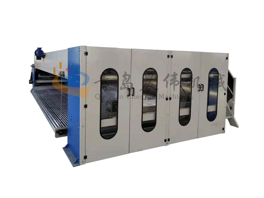 4.夾持式防靜電喂入簾,往復(fù)換向運轉(zhuǎn)平穩(wěn),纖網(wǎng)厚薄均勻,輸出簾升降調(diào)節(jié)方便。